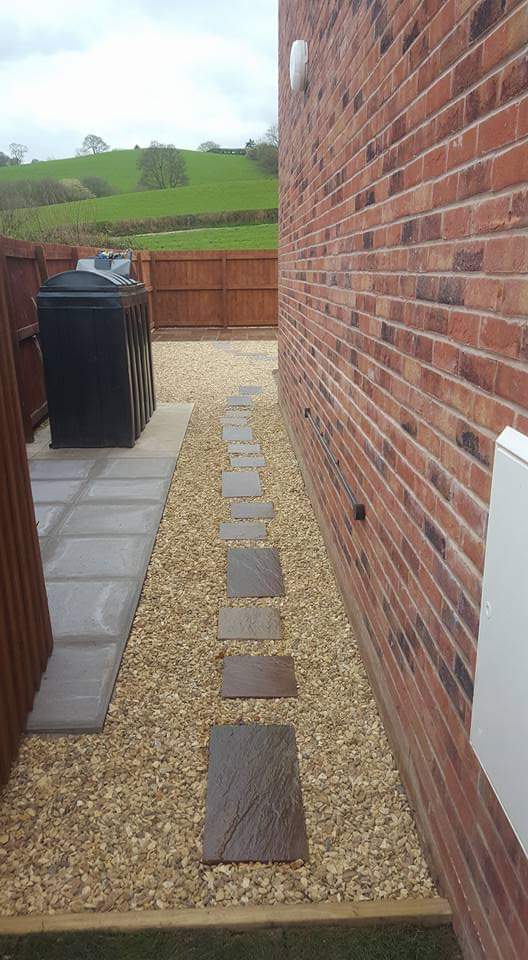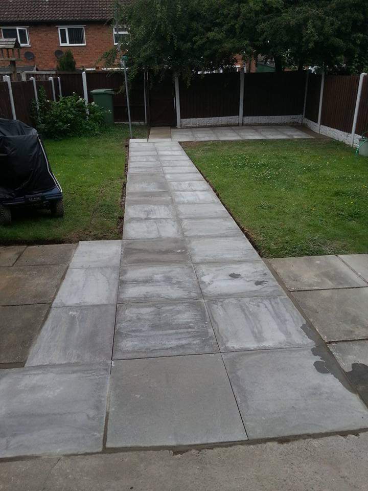 • Crazy paving paths and pond surrounds.